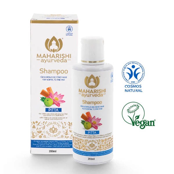 Champú a base de hierbas ayurvédicas para cabello normal a fino. Cuidado excepcionalmente suave. El Champú de plantas Pitta proporciona al cabello fuerza, brillo y una deliciosa fragancia con una combinación única de hierbas, flores y frutas ayurvédicas originales, que incluyen acacia, nenúfar azul, fruta amla y sándalo blanco. Con aceites esenciales 100% puros de vetiver y cedro. Hecho en la India según fórmula auténtica.