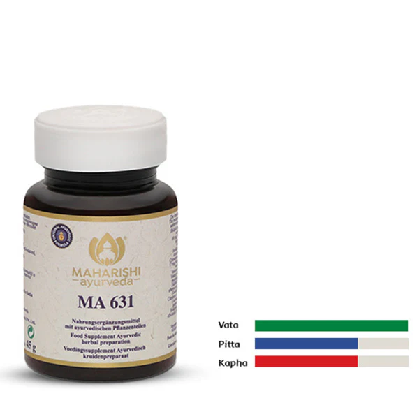 MA631 es una compleja fórmula diseñada para aumentar la energía y la longevidad en la fisiología. Su acción rejuvenecedora la lleva a cabo protegiendo tres aspectos básicos de su salud: el metabolismo óseo-asthi agni (para un cuerpo fuerte), la médula ósea-majja dathu (para aumentar la longevidad) y los fluidos reproductivos-sukra dathu (para una buena salud general, felicidad y virilidad). Cuando MA631 se toma regularmente los beneficios se acumulan.